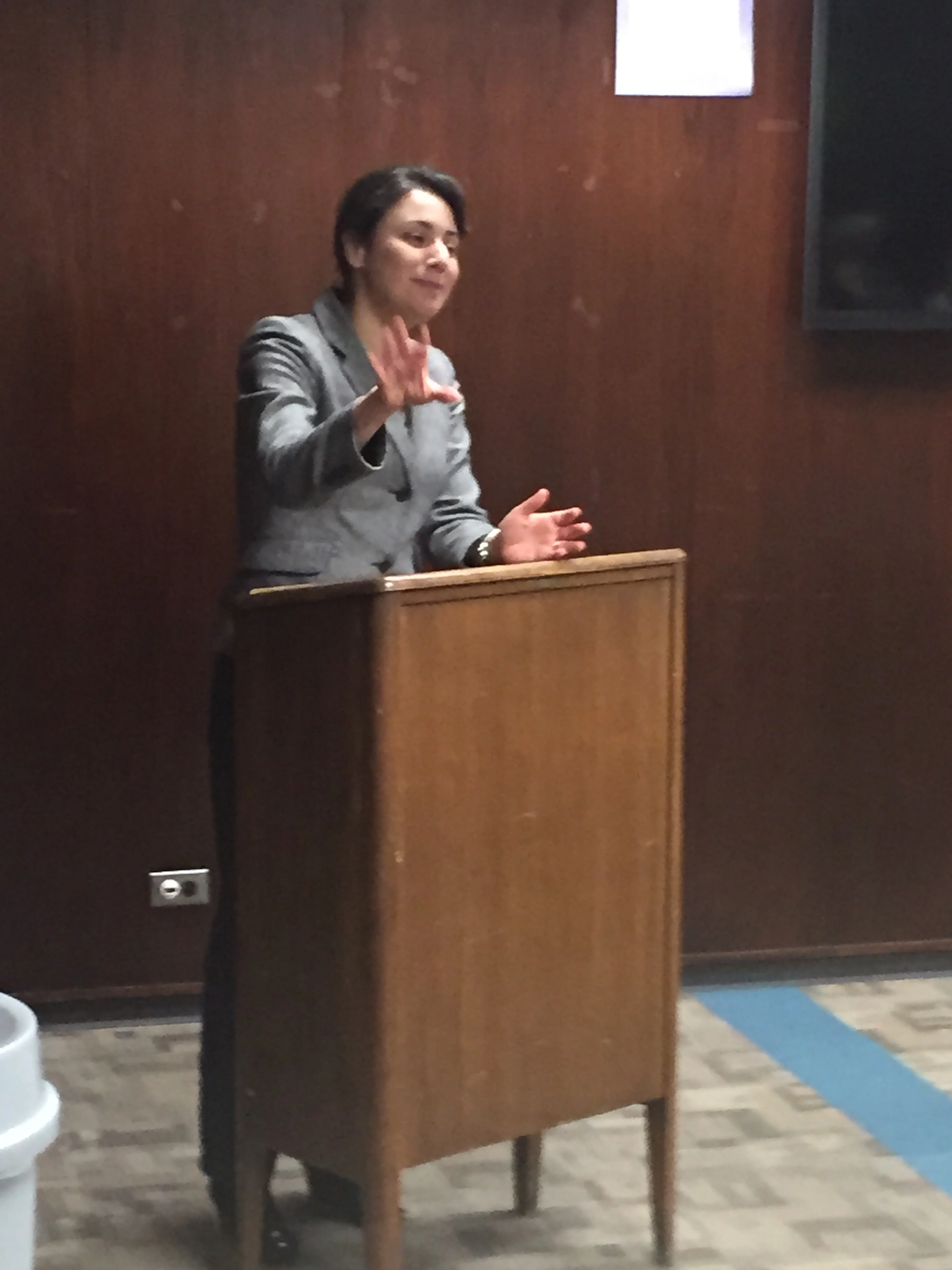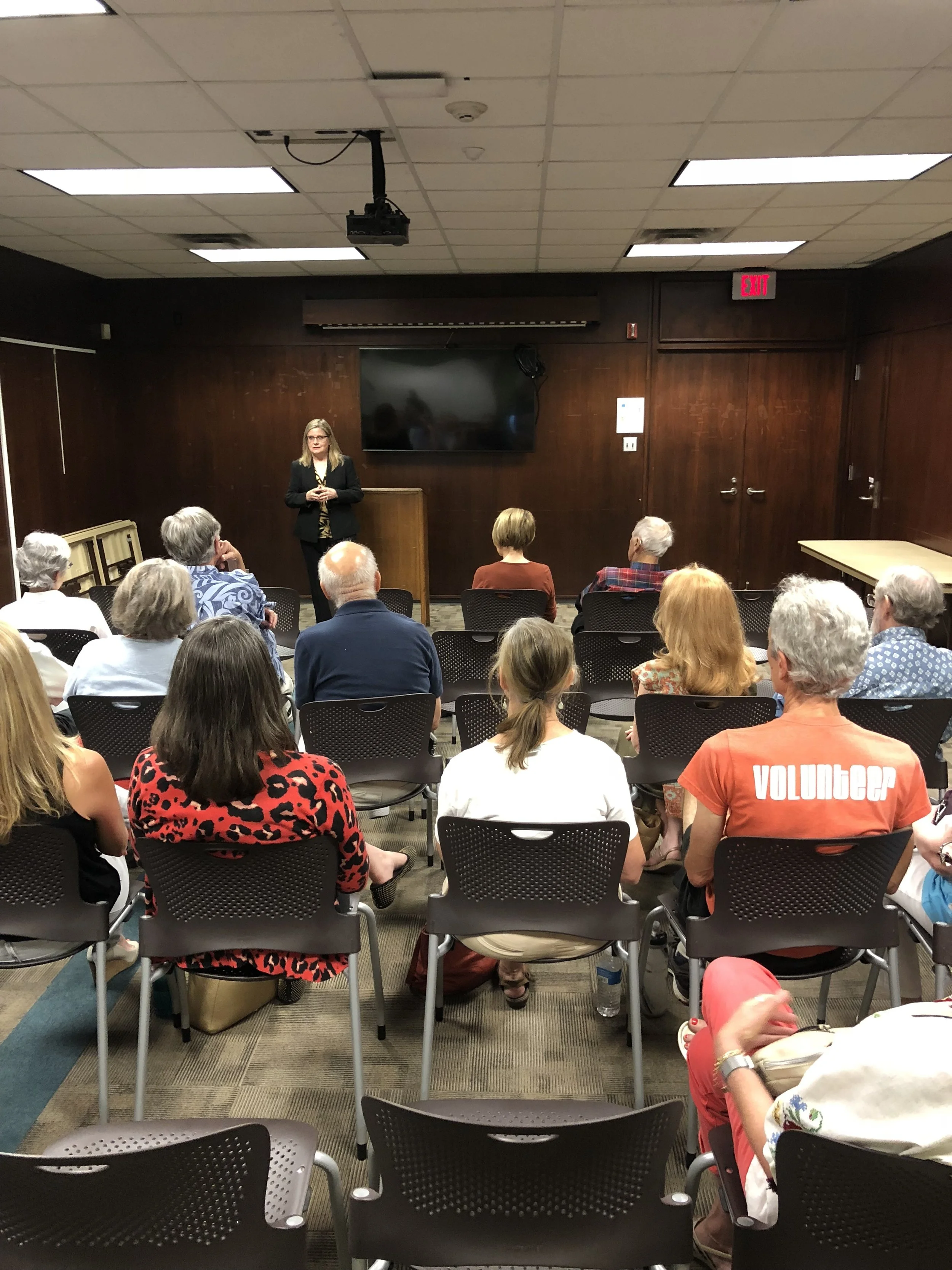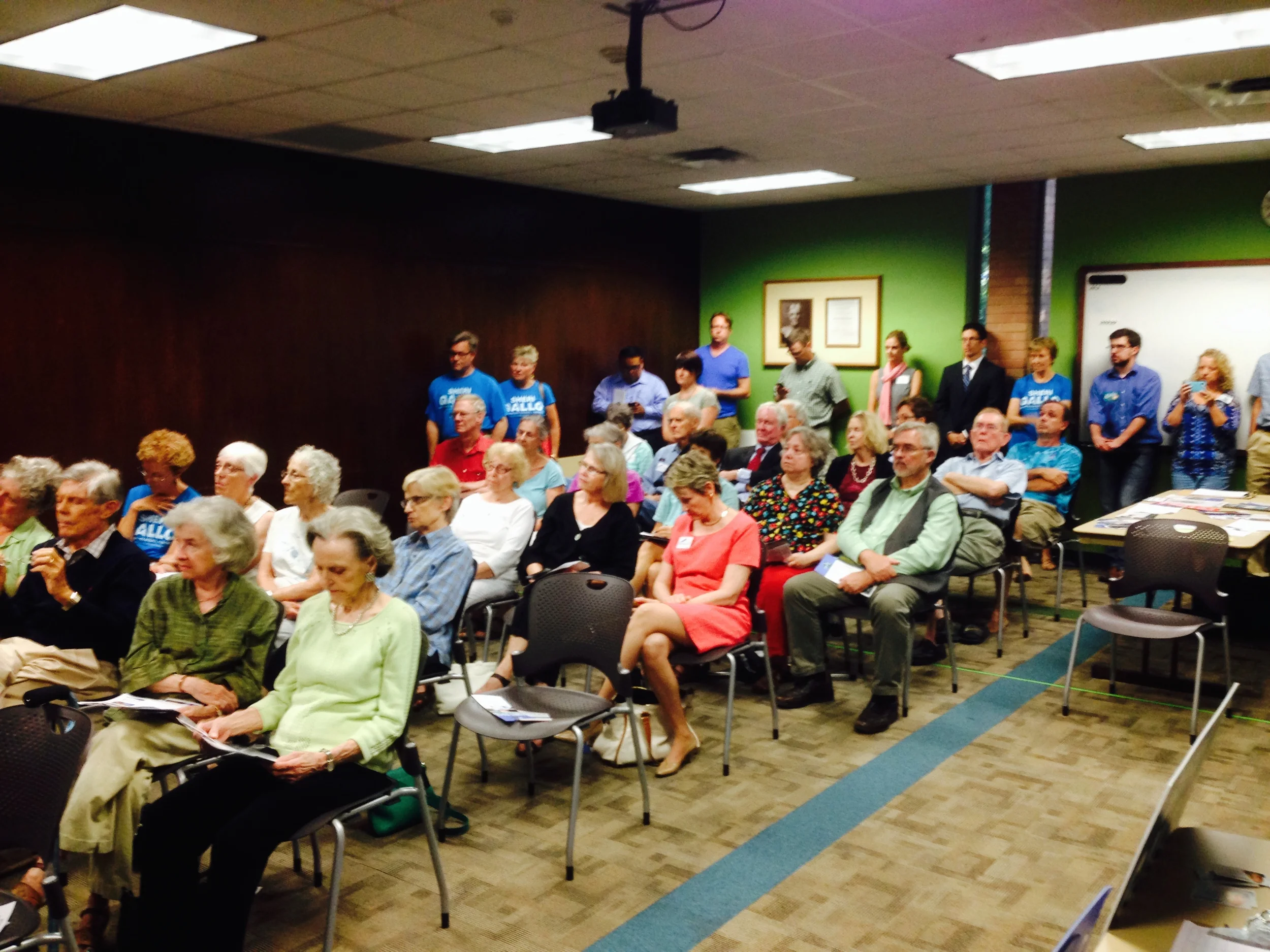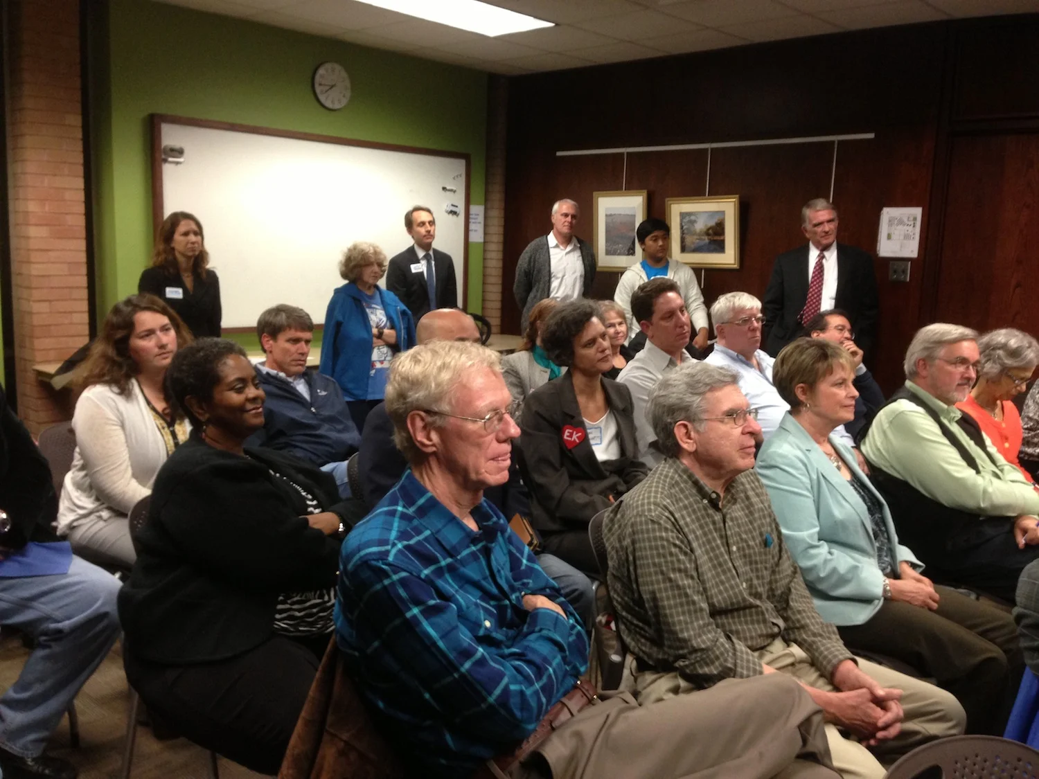 The meeting was well attended, and filled the room into the hallway.